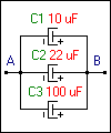 C Toplam = 10 uF+ 22 uF + 100 uF