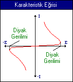 Yukarıdaki karakteristik eğride görüldüğü gibi diyak üzerine uygulanan gerilim diyak gerilimine ulaşana kadar diyak üzerinden sadece sızıntı akımı geçmektedir. Bu gerilim aşıldığında ise diyak iletime geçer. Diyak ile kaynak arasına bir direnç bağlanarak diyak üzerinden geçen akım sınırlanır. Fakat diyak üzerinden geçen akım mikro akım seviyesine kadar indirilirse diyak tekrar yalıtıma geçebilir. Şekilde de görüldüğü gibi diyak doğru ve ters polarmalara karşı aynı tepkiyi vermektedir.