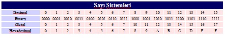 Aşağıda, tüm sayı sistemlerinin birbirlerine olan eşitlikleri görülmektedir.