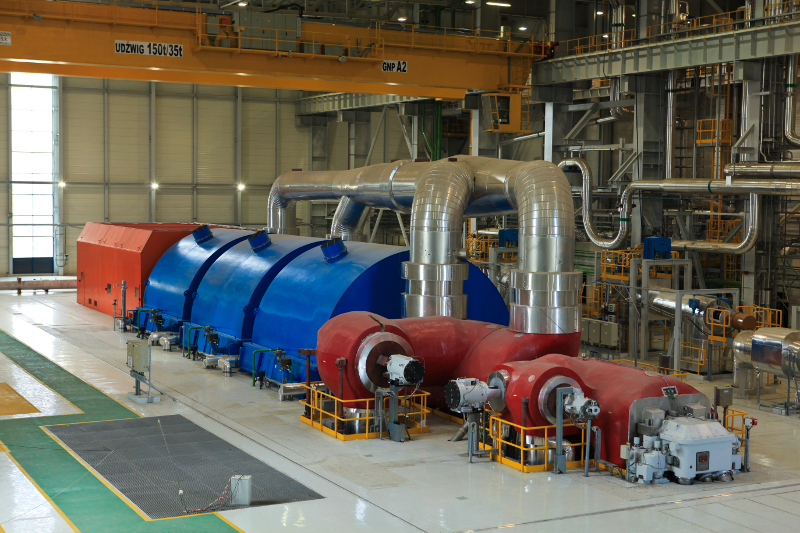 Sıcak ve basınçlandırımış buhar (genelde 500°-600°C,ve 80 - 100 bar) izole boru sistemleri ile türbine gönderilir. Buhar bünyesinde barındırdığı büyük miktardaki enerjiyle türbin kanatlarını döndürmeye başlar. Türbin miline akuple edilmiş generatör rotoru türbinle aynı hızda döner türbin hızı belirli bir hıza ulaştığında(Çatalağzı T.S ‘de 3000 dev/dak) generatör rotuna ikaz verilir ve generatör çıkışından elektrik enerjisi elde edilmiş olur, böylece santralin nihai amacı olan elektrik enerjisi elde edilmiş olur.