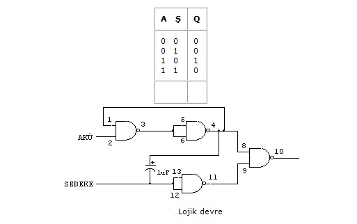 Bu koşulları sağlayan devrenin lojik durumları tabloda verilmiştir.